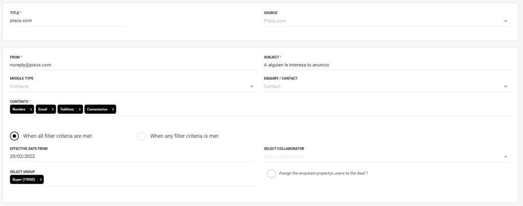 - Si la consulta se refiere a un inmueble concreto, el sistema establecerá ese vínculo y esta información podrá utilizarse de varias maneras en posteriores automatizaciones, por ejemplo:
